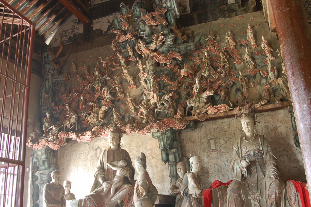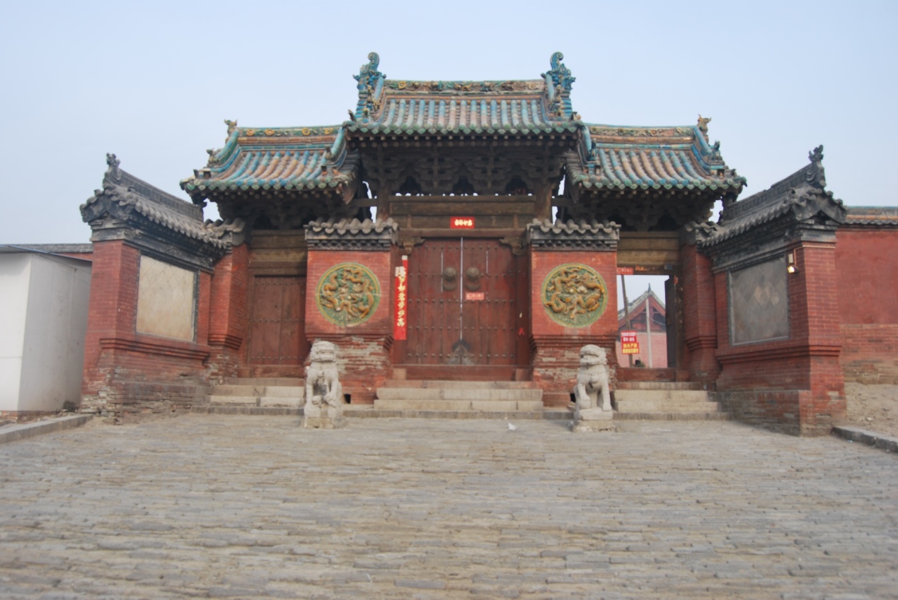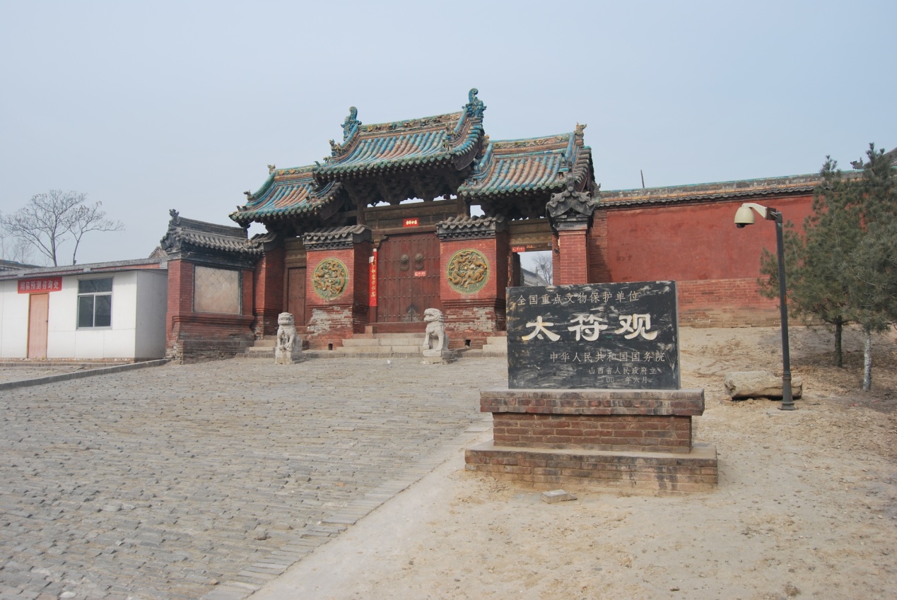 太符观,位于汾阳市杏花村镇上庙村西北部。始建年代不详,据观内现存碑、碣记载:金承安五年(1200)创建醮坛;明代观内后土圣母殿被火焚烧,万历十一年(1583)重建;明万历三十六年(1608)增建紫薇阁;清顺治十四年(1657)重修五岳殿。1978年对观内建筑进行了整体维修。观坐北面南,原构布局不详,现存为一进院,南北长101.41米,东西宽50.28米,占地面积5099平方米。中轴线上由南至北现存山门、正殿(昊天玉皇上帝殿),西侧存偏门一座(后建)、舍窑五孔(砖券窑洞)和西配殿(五岳殿),东侧存办公室(新建)和东配殿(后土圣母殿)。现存建筑中,正殿整体保持金代建筑结构形制,为金代遗构;其余建筑均为明代遗存。太符观现存各殿宇中彩塑、壁画和悬塑保存较为完整,数量众多,制作精美,具有较高的历史、艺术价值。2001年6月,中华人民共和国国务院公布为全国重点文物保护单位。