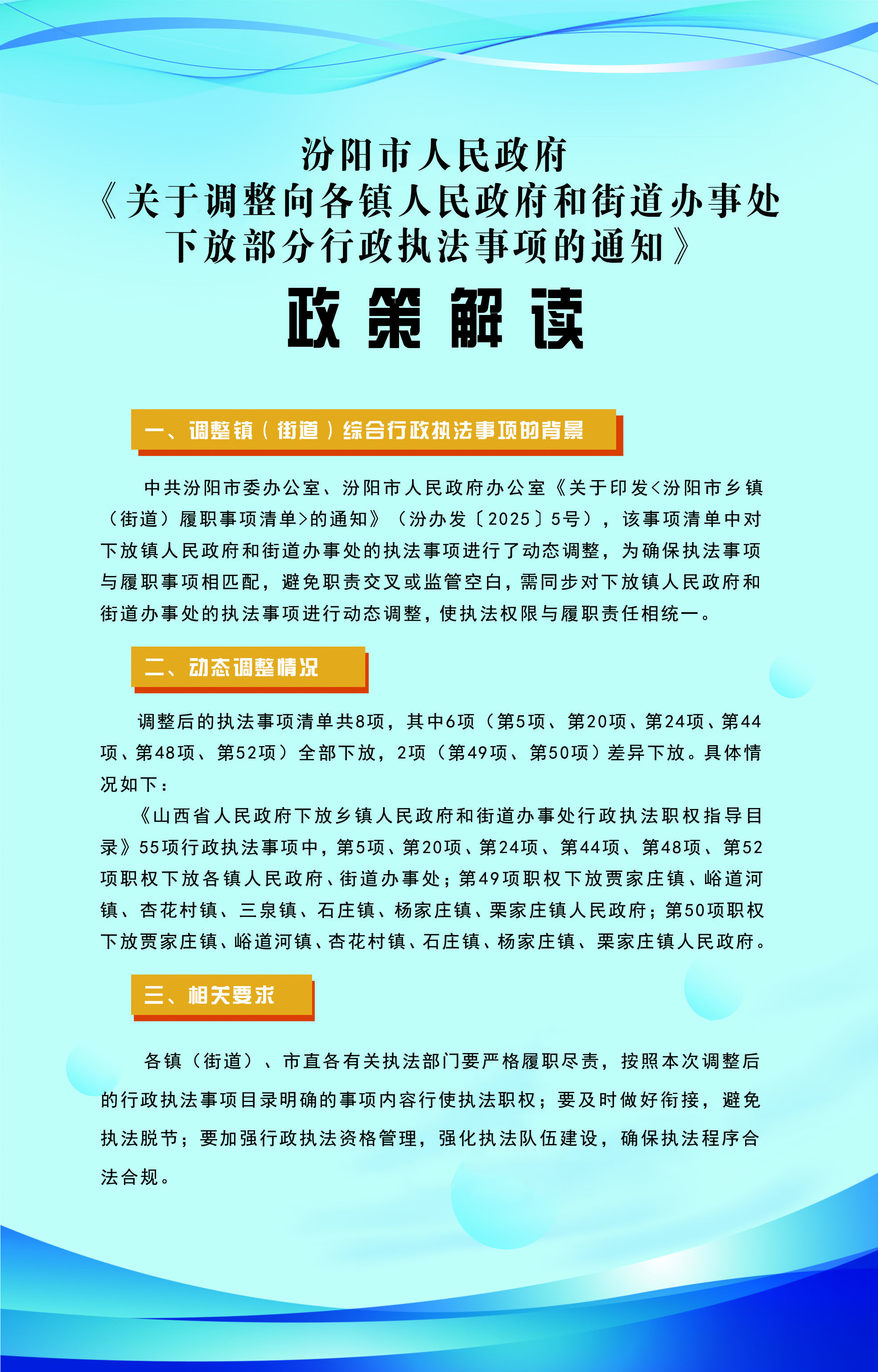 【图解】汾阳市人民政府 关于调整向各镇人民政府和街道办事处 下放部分行政执法事项的通知