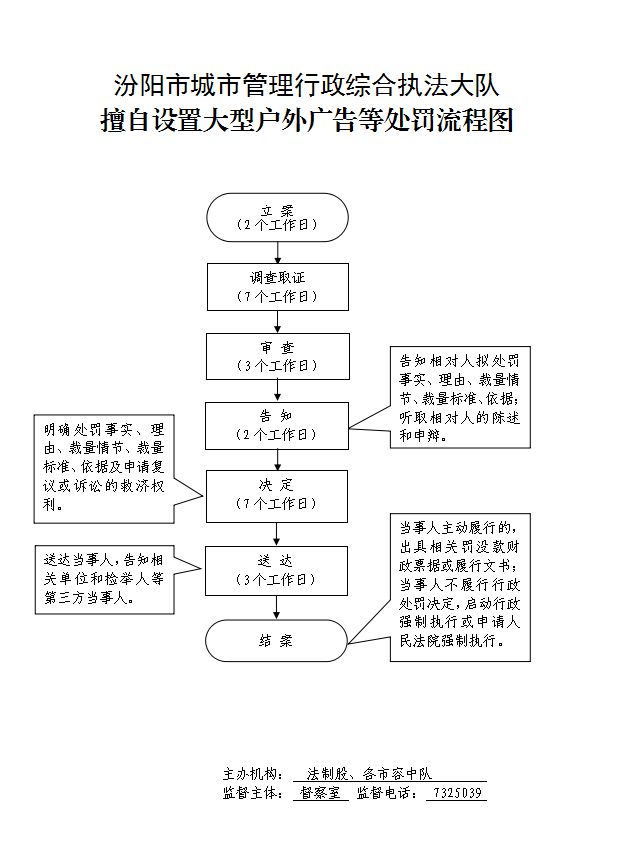 1.立案责任:对符合立案条件的予以立案,不符合立案条件的不予立案并告知理由。 2.调查责任:全面客观公正调查收集有关证据,必要时可依法进行检查;调查时执法人员不少于两人并出示证件;进行先行登记保存时需经行政机关负责人批准并在七日内作出处理决定;执法人员与当事人有利害关系的执行回避制度。 3.审查责任:行政机关负责人对调查结果进行审查。 4.告知责任:在作出行政处罚决定之前告知当事人作出行政处罚决定的事实理由及依据并告知当事人依法享有陈述、申辩、行政复议、行政诉讼的权力。 5.决定责任:根据调查结果作出行政处罚决定并依法制作行政处罚决定书。 6.送达责任:将行政处罚决定书交付当事人。 7.执行责任:按照法定情形执行当场收缴、罚缴分离,并出据财政部门统一制发的罚款收据;当场收缴的罚款在法定期限内交至行政机关或指定银行;对逾期不履行行政处罚决定的当事人可依法采取强制措施。 8.其他法律法规规章规定应履行的责任。 |