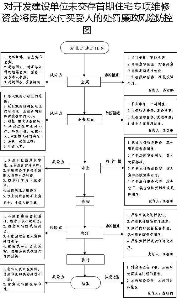 1、立案责任:有违法行为发生,应立案的予以立案查处;对不予立案的,应及时告知。2、调查责任:依法收集证据,经过查证属实才能作为认定案件事实的依据;违法事实不清的,不能给予行政处罚。 3、审查和告知责任:对案件违法事实、证据、调查取证程序、法律适用、处罚种类和幅度、当事人陈述和申辩等材料进行审核,提出审查意见并书面告知当事人违法事实及其享有的权利。 4、决定和送达责任:根据审理情况决定是否予以行政处罚。依法需要给予行政处罚的,制作行政处罚决定书,载明违法事实和证据、处罚依据和内容、申请行政复议或提起行政诉讼的途径和期限等内容并在7日内送达当事人。6、执行责任:监督当事人在决定的期限内是否履行行政处罚决定,不履行的,可依法采取申请人民法院强制执行等措施。7、其他法律法规规章政策规定应履行的责任。 |