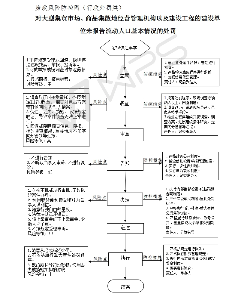 5、决定责任:制作行政处罚决定书,载明行政处罚告知、当事人陈述申辩或者听证情况等内容。6、送达责任:行政处罚决定书按法律规定的方式送达当事人7、执行责任:依照生效的行政处罚决定执行。8、其他法律法规规章文件规定应履行的责任。 |