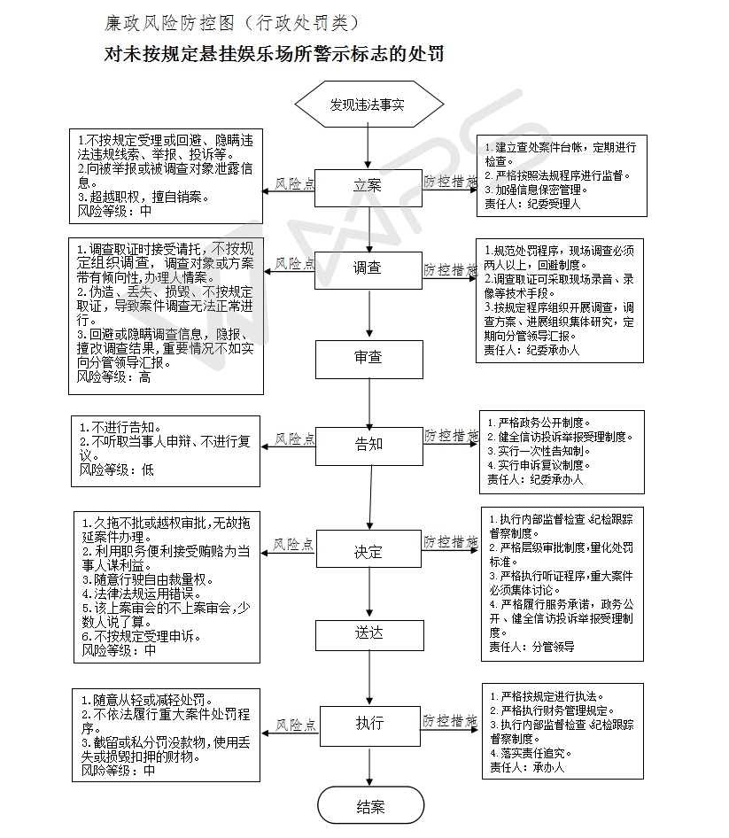 5、决定责任:制作行政处罚决定书,载明行政处罚告知、当事人陈述申辩或者听证情况等内容。6、送达责任:行政处罚决定书按法律规定的方式送达当事人7、执行责任:依照生效的行政处罚决定执行。8、其他法律法规规章文件规定应履行的责任。 |