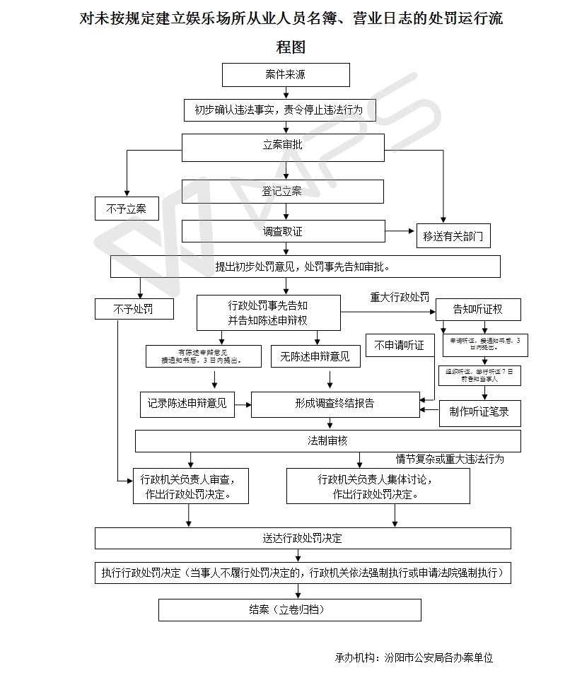 5、决定责任:制作行政处罚决定书,载明行政处罚告知、当事人陈述申辩或者听证情况等内容。6、送达责任:行政处罚决定书按法律规定的方式送达当事人7、执行责任:依照生效的行政处罚决定执行。8、其他法律法规规章文件规定应履行的责任。 |
