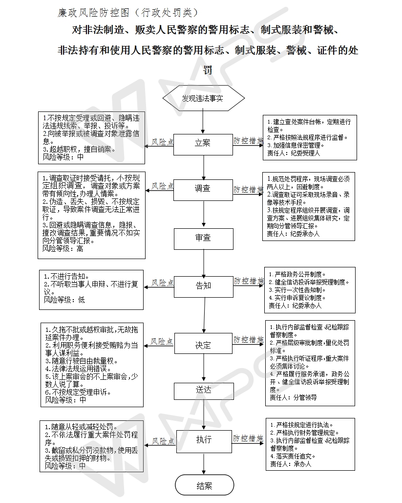5、决定责任:制作行政处罚决定书,载明行政处罚告知、当事人陈述申辩或者听证情况等内容。6、送达责任:行政处罚决定书按法律规定的方式送达当事人7、执行责任:依照生效的行政处罚决定执行。8、其他法律法规规章文件规定应履行的责任。 |