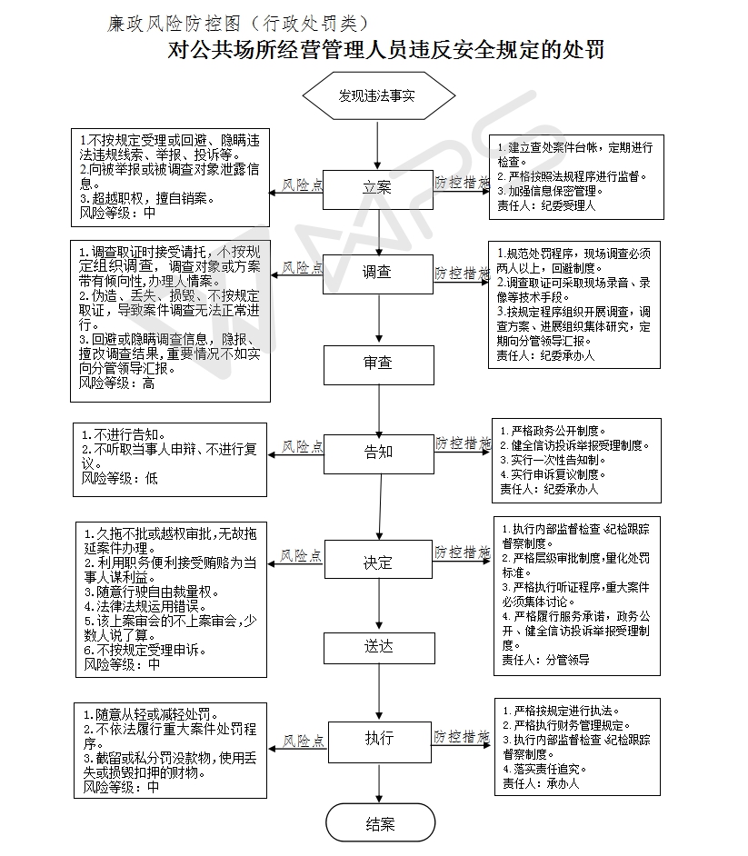 5、决定责任:制作行政处罚决定书,载明行政处罚告知、当事人陈述申辩或者听证情况等内容。6、送达责任:行政处罚决定书按法律规定的方式送达当事人7、执行责任:依照生效的行政处罚决定执行。8、其他法律法规规章文件规定应履行的责任。 |