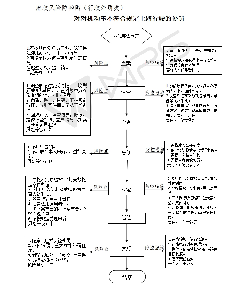 5、决定责任:制作行政处罚决定书,载明行政处罚告知、当事人陈述申辩或者听证情况等内容。6、送达责任:行政处罚决定书按法律规定的方式送达当事人7、执行责任:依照生效的行政处罚决定执行。8、其他法律法规规章文件规定应履行的责任。 |