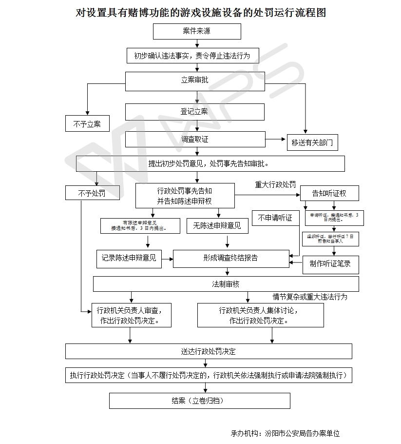 5、决定责任:制作行政处罚决定书,载明行政处罚告知、当事人陈述申辩或者听证情况等内容。6、送达责任:行政处罚决定书按法律规定的方式送达当事人7、执行责任:依照生效的行政处罚决定执行。8、其他法律法规规章文件规定应履行的责任。 |