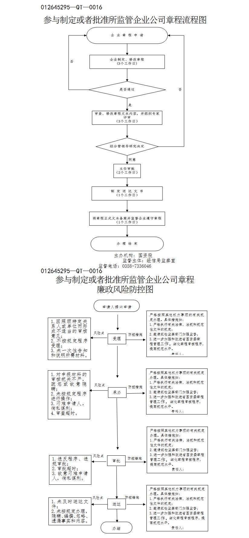 参与制定或者批准所监管企业公司章程 |