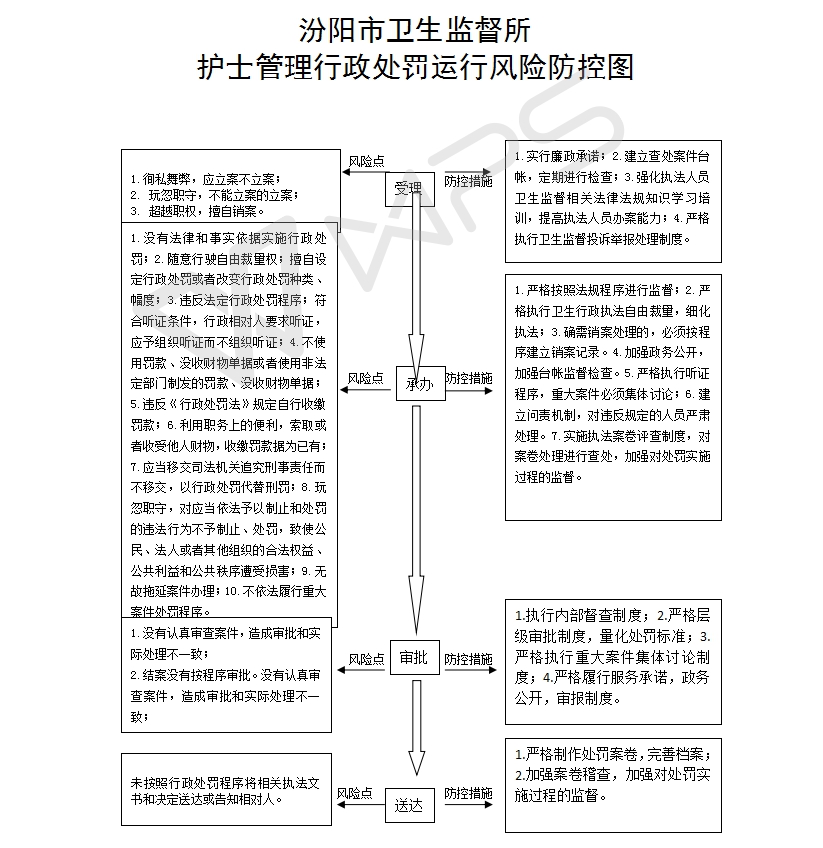 1、立案责任:对医务人员执业过程中的违法行为或举报案件,予以审查、决定是否立案。 2、调查责任:综合执法科室及乡镇卫生监督站对各自辖区内立案的案件,指定专人负责,及时组织调查取证,与当事人有直接利害关系的应到回避。执法人员不得少于两人,调查时应出示执法证件,允许当事人辩解陈述。执法人员应保守有关秘密。 3、审查责任:审理案件调查报告,对案件违法事实、证据、调查取证程序、法律适用、处罚种类和幅度、当事人陈述和身边理由等方面进行审查,提出处理意见(主要证据不足时,以适当的方式补充调查)。 4、告知责任:作出行政处罚决定前,应制作《行政处罚告知书》送达当事人,告知违法事实及其享有的 陈述、申辩等权利。符合听证规定的,制作并送达《行政处罚听证告知书》。 5、决定责任:制作行政处罚决定书,载明行政处罚告知、当事人陈述申辩或者听证情况等内容。 6、送达责任:行政处罚决定书按法律规定的方式送达当事人 7、执行责任:依照生效的行政处罚决定,采取罚款、责令停业等行政处罚措施。 8、其他法律法规规章文件规定应履行的责任。 |