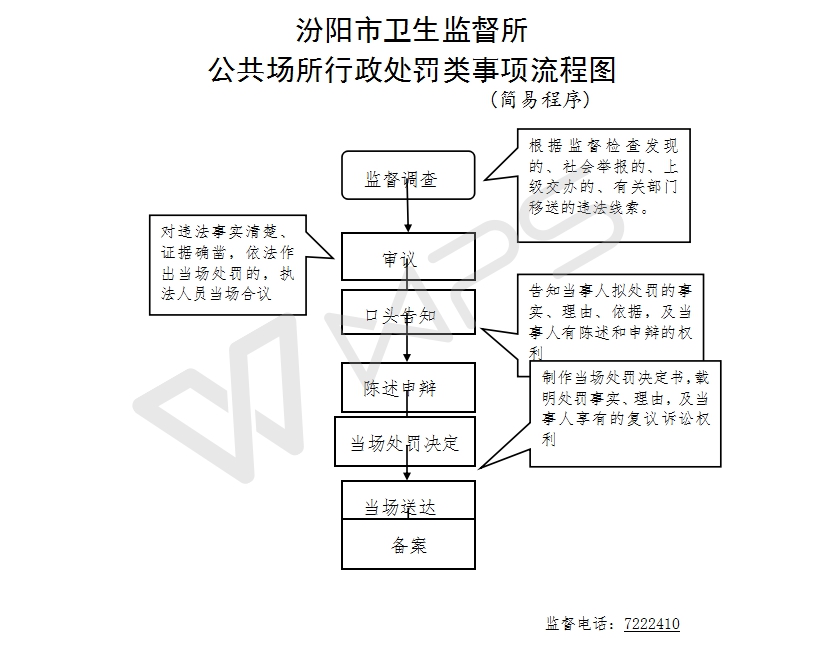 1、立案责任:发现违反公共场所卫生管理相关法律法规规章规范的违法行为或举报案件,予以审查、决定是否立案。 2、调查责任:公共综合执法科室及乡镇卫生监督站对各自辖区内立案的案件,指定专人负责,及时组织调查取证,与当事人有直接利害关系的应到回避。执法人员不得少于两人,调查时应出示执法证件,允许当事人辩解陈述。执法人员应保守有关秘密。 3、审查责任:审理案件调查报告,对案件违法事实、证据、调查取证程序、法律适用、处罚种类和幅度、当事人陈述和身边理由等方面进行审查,提出处理意见(主要证据不足时,以适当的方式补充调查)。 4、告知责任:作出行政处罚决定前,应制作《行政处罚告知书》送达当事人,告知违法事实及其享有的 陈述、申辩等权利。符合听证规定的,制作并送达《行政处罚听证告知书》。 5、决定责任:制作行政处罚决定书,载明行政处罚告知、当事人陈述申辩或者听证情况等内容。 6、送达责任:行政处罚决定书按法律规定的方式送达当事人 7、执行责任:依照生效的行政处罚决定,采取罚款、责令停业等行政处罚措施。 8、其他法律法规规章文件规定应履行的责任。 |