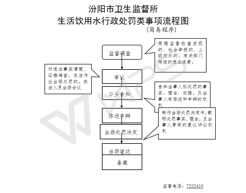 1、立案责任:发现违反生活饮用水卫生监督管理规定的违法行为或举报案件,予以审查、决定是否立案。 2、调查责任:综合执法科室及乡镇卫生监督站对各自辖区内立案的案件,指定专人负责,及时组织调查取证,与当事人有直接利害关系的应到回避。执法人员不得少于两人,调查时应出示执法证件,允许当事人辩解陈述。执法人员应保守有关秘密。 3、审查责任:审理案件调查报告,对案件违法事实、证据、调查取证程序、法律适用、处罚种类和幅度、当事人陈述和身边理由等方面进行审查,提出处理意见(主要证据不足时,以适当的方式补充调查)。 4、告知责任:作出行政处罚决定前,应制作《行政处罚告知书》送达当事人,告知违法事实及其享有的 陈述、申辩等权利。符合听证规定的,制作并送达《行政处罚听证告知书》。 5、决定责任:制作行政处罚决定书,载明行政处罚告知、当事人陈述申辩或者听证情况等内容。 6、送达责任:行政处罚决定书按法律规定的方式送达当事人 7、执行责任:依照生效的行政处罚决定,采取罚款、责令停业等行政处罚措施。 8、其他法律法规规章文件规定应履行的责任。 |