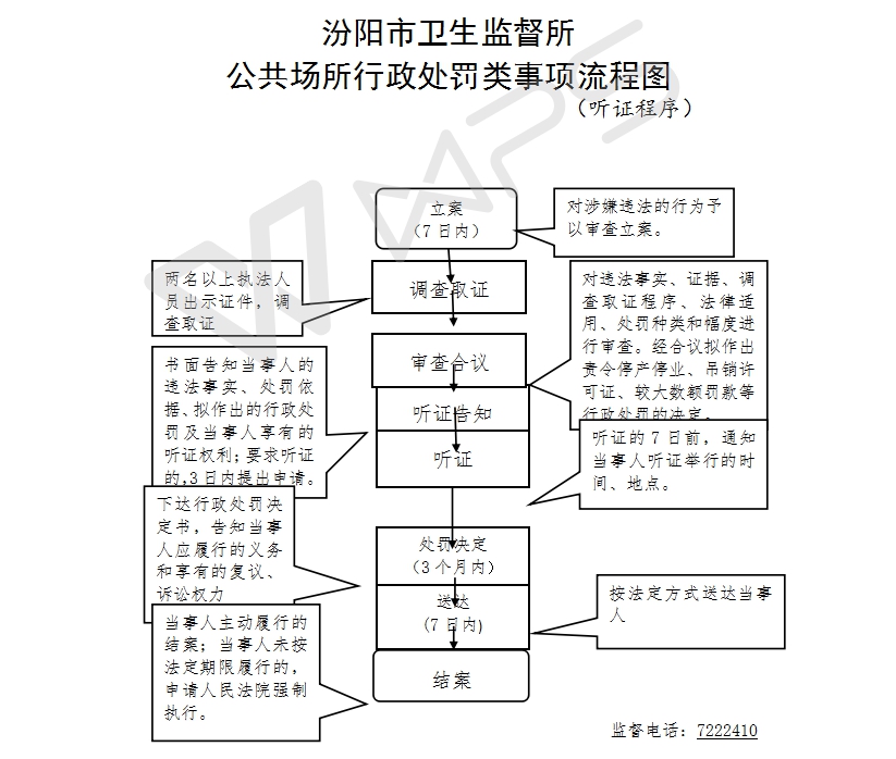 1、立案责任:发现违反公共场所卫生管理相关法律法规规章规范的违法行为或举报案件,予以审查、决定是否立案。 2、调查责任:公共综合执法科室及乡镇卫生监督站对各自辖区内立案的案件,指定专人负责,及时组织调查取证,与当事人有直接利害关系的应到回避。执法人员不得少于两人,调查时应出示执法证件,允许当事人辩解陈述。执法人员应保守有关秘密。 3、审查责任:审理案件调查报告,对案件违法事实、证据、调查取证程序、法律适用、处罚种类和幅度、当事人陈述和身边理由等方面进行审查,提出处理意见(主要证据不足时,以适当的方式补充调查)。 4、告知责任:作出行政处罚决定前,应制作《行政处罚告知书》送达当事人,告知违法事实及其享有的 陈述、申辩等权利。符合听证规定的,制作并送达《行政处罚听证告知书》。 5、决定责任:制作行政处罚决定书,载明行政处罚告知、当事人陈述申辩或者听证情况等内容。 6、送达责任:行政处罚决定书按法律规定的方式送达当事人 7、执行责任:依照生效的行政处罚决定,采取罚款、责令停业等行政处罚措施。 8、其他法律法规规章文件规定应履行的责任。 |