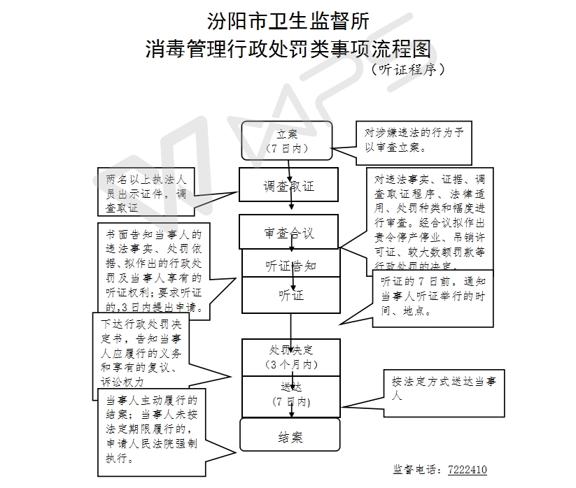1、立案责任:发现违反消毒卫生监督管理规定的违法行为或举报案件,予以审查、决定是否立案。 2、调查责任:综合执法科室及乡镇卫生监督站对各自辖区内立案的案件,指定专人负责,及时组织调查取证,与当事人有直接利害关系的应到回避。执法人员不得少于两人,调查时应出示执法证件,允许当事人辩解陈述。执法人员应保守有关秘密。 3、审查责任:审理案件调查报告,对案件违法事实、证据、调查取证程序、法律适用、处罚种类和幅度、当事人陈述和身边理由等方面进行审查,提出处理意见(主要证据不足时,以适当的方式补充调查)。 4、告知责任:作出行政处罚决定前,应制作《行政处罚告知书》送达当事人,告知违法事实及其享有的 陈述、申辩等权利。符合听证规定的,制作并送达《行政处罚听证告知书》。 5、决定责任:制作行政处罚决定书,载明行政处罚告知、当事人陈述申辩或者听证情况等内容。 6、送达责任:行政处罚决定书按法律规定的方式送达当事人 7、执行责任:依照生效的行政处罚决定,采取罚款、责令停业等行政处罚措施。 8、其他法律法规规章文件规定应履行的责任。 |