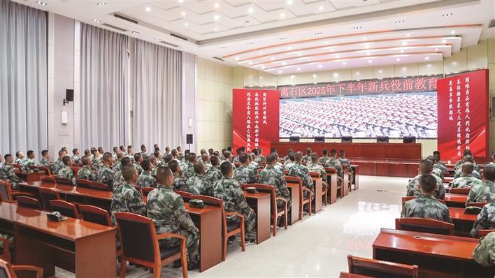 图①为离石区人武部组织全体官兵及参加役前教育的应征青年观看直播。 记者 李 宇 摄