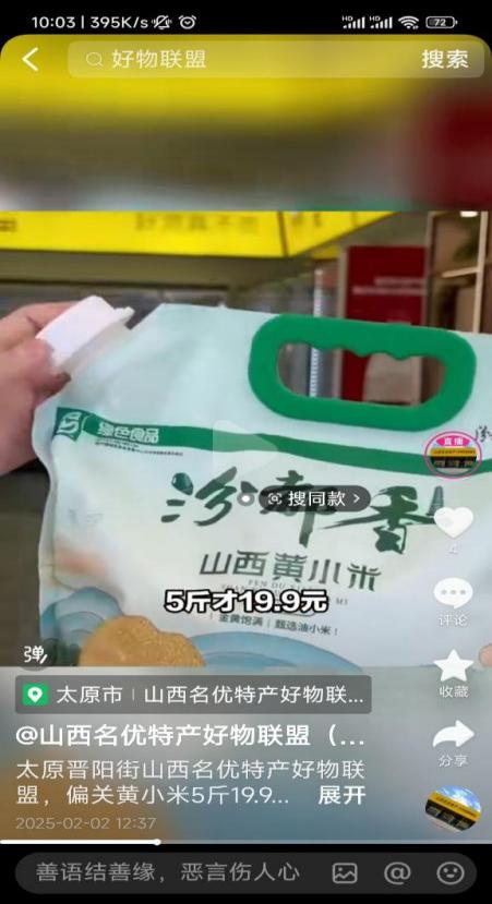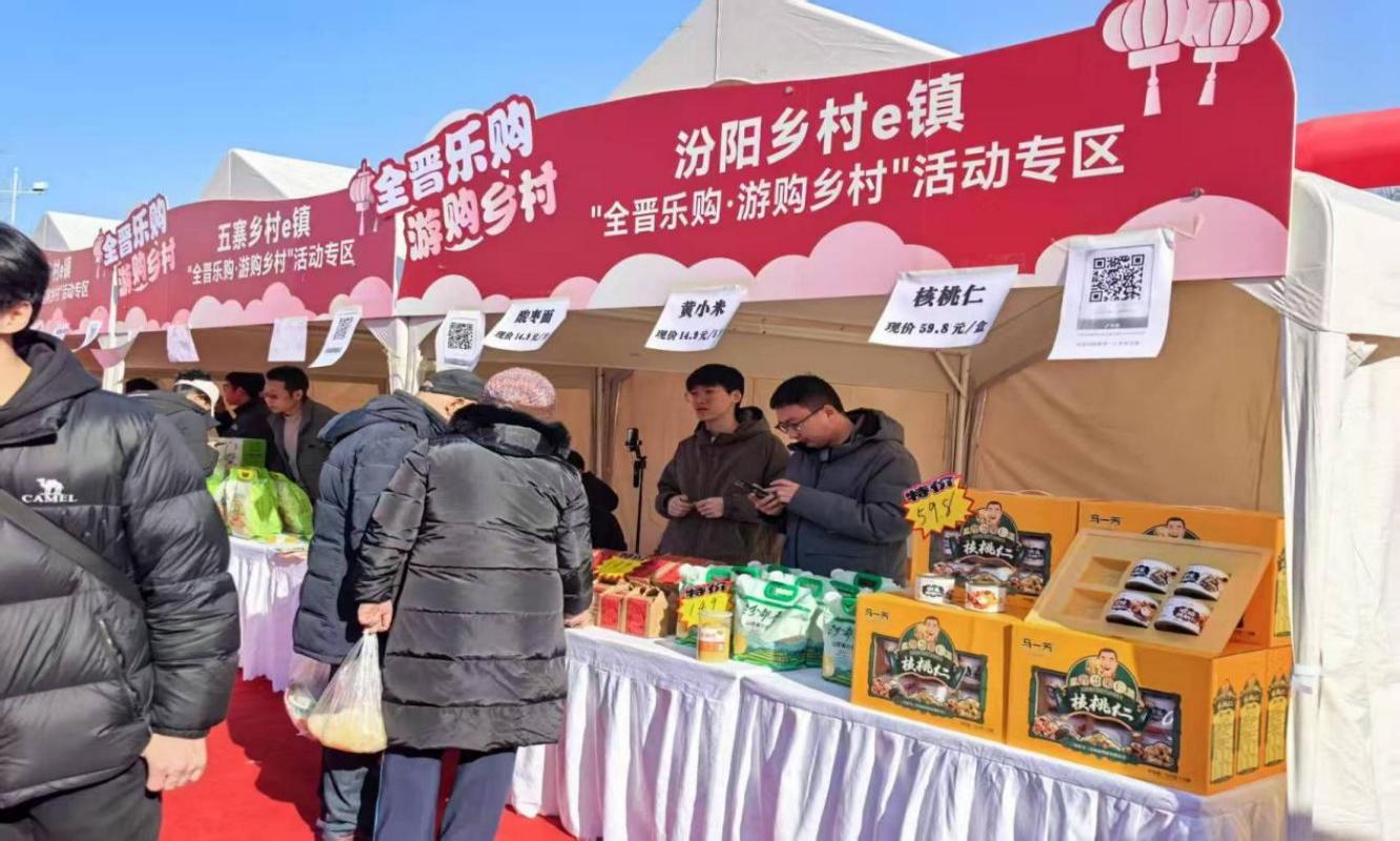 汾阳市乡村 e 镇携汾都香农业、马一芳食品、晋斋坊食品等企业参与展销,展陈山西黄小米、汾阳核桃、酸枣面等特色农产品,以优品质、亲民价吸引消费者选购,赢得青睐。