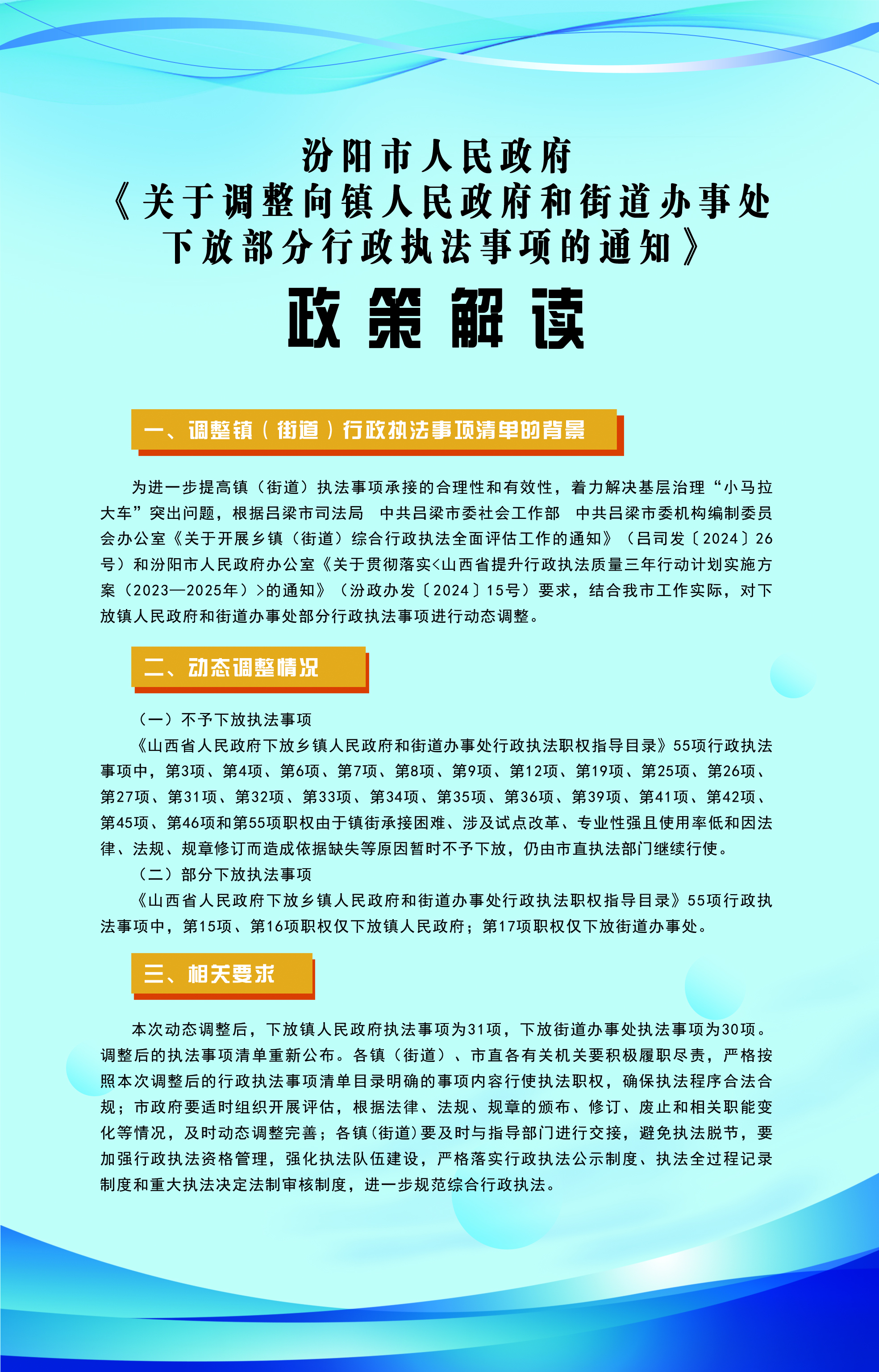 【图解】汾阳市人民政府 关于调整向镇人民政府和街道办事处 下放部分行政执法事项的通知
