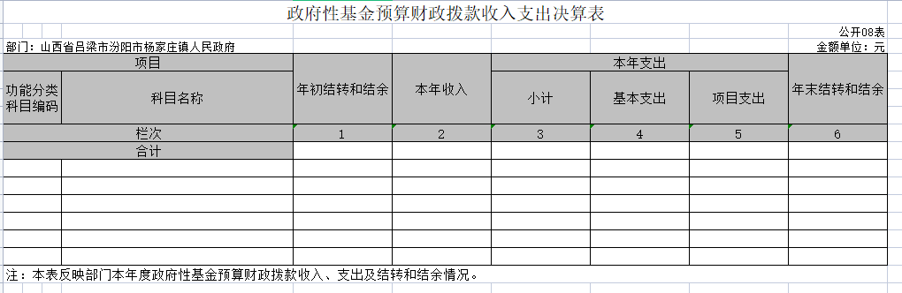 说明:汾阳市杨家庄镇人民政府没有使用政府性基金预算安排的支出,故本表无数据