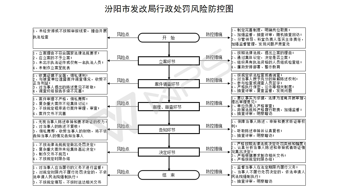 1、立案责任:发现和受理移交的违法行为,予以审查,决定是否立案。 2、调查责任:对立案的案件,指定专人负责,及时组织调查取证,与当事人有直接利害关系的应当回避。执法人员不得少于两人,调查时应出示执法证件,允许当事人辩解陈述。执法人员廉洁奉公保守有关秘密。 3、审查责任;审查案件调查报告,对案件违法事实、证据、调查取证程序、法律适用、处罚种类和幅度、当事人陈述和申辩理由等方面进行审查,提出处理意见(主要证据不足时,以适当的方式补充调查)。 4、告知责任:作出行政处罚决定前,应制作《行政处罚告知书》送达当事人,告知违法事实及其享有的陈述、申辩等权利。符合听证规定的,制作《行政处罚听证告知书》。 5、决定责任:制作行政处罚决定书,载明行政处罚告知、当事人陈述申辩或者听证情况等内容。 6、送达责任:行政处罚决定书按法律规定的方式送达当事人。 7、执行责任:依照生效的行政处罚决定,进行处罚。 8、其他:法律法规规章规定应履行的责任。 |