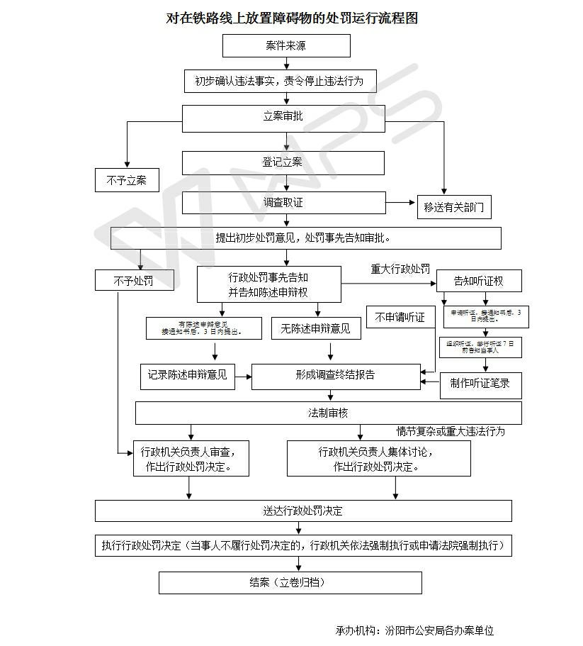 5、决定责任:制作行政处罚决定书,载明行政处罚告知、当事人陈述申辩或者听证情况等内容。6、送达责任:行政处罚决定书按法律规定的方式送达当事人7、执行责任:依照生效的行政处罚决定执行。8、其他法律法规规章文件规定应履行的责任。 |