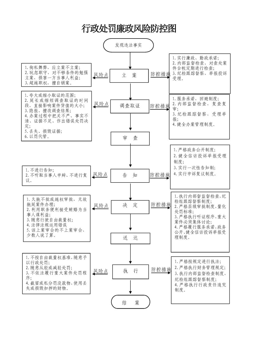 1.立案环节责任:食品药品监督部门在检查中发现或者接到举报有违法行为或者交办、上报、移送的此类违法案件,应予以审查,决定是否立案。 2.调查环节责任:食品药品监督部门对立案的案件,指定专人负责,与当事人有直接利害关系的应当回避。执法人员不得少于两人,调查时应出示执法证件,允许当事人陈述申辩,执法人员应保守有关秘密。 3.审查环节责任:食品药品监督部门应当组织3名以上有关人员对违法行为的事实、性质、情节、社会危害程度、办案程序、处罚意见等进行合议审查。 4.告知环节责任:食品药品监督部门在做出行政处罚决定前,应书面告知当事人违法事实、处罚的理由和依据,以及当事人依法享有的陈述、申辩、要求听证等权利。 5.决定环节责任:食品药品监督部门根据审理情况决定是否予以行政处罚,对情节复杂或者重大违法行为给予较重的行政处罚,应当由食品药品监督管理部门负责人集体讨论决定。依法需要给予行政处罚的,应制作行政处罚决定书,载明违法事实和证据、处罚依据和内容、申请行政复议或提起行政诉讼的途径和期限等内容。行政处罚决定中涉及没收食品或者其他有关物品的,还应当附没收物品凭证。 6.送达环节责任:行政处罚决定书应在7日内送达当事人,邮寄送达、公告送达的期限依照《食品药品行政处罚程序规定》执行。 7.执行环节责任:监督当事人在决定的期限内,履行生效的行政处罚决定。当事人在法定期限内不申请行政复议或者提起行政诉讼,又不履行的,食品药品监督部门可依法采取加处罚款、查封扣押或向人民法院申请强制执行等措施。 8.其他法律法规规章规定应履行的责任。 |